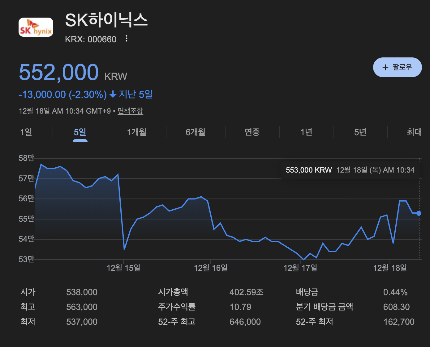 | SK하이닉스 | 약 -7.6% | +3%대 반등 |